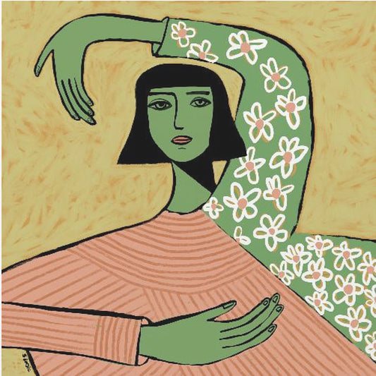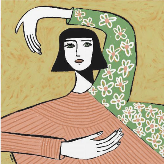 Vrouw op kruk | Canvas
