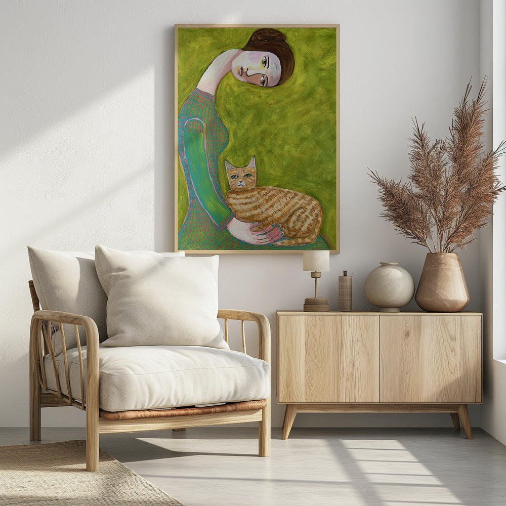 Bent Neck Lady with her so loved ginger cat. | Poster