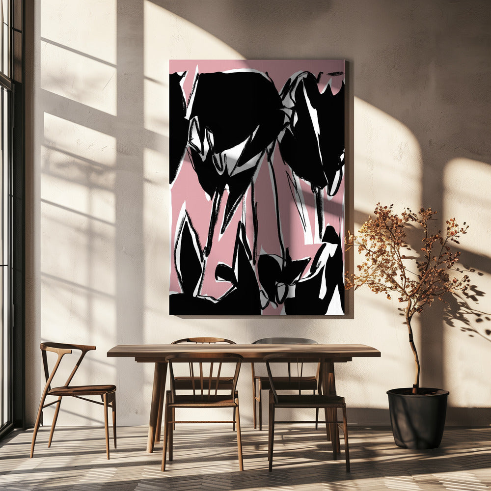 Black Pink Tulips | Canvas