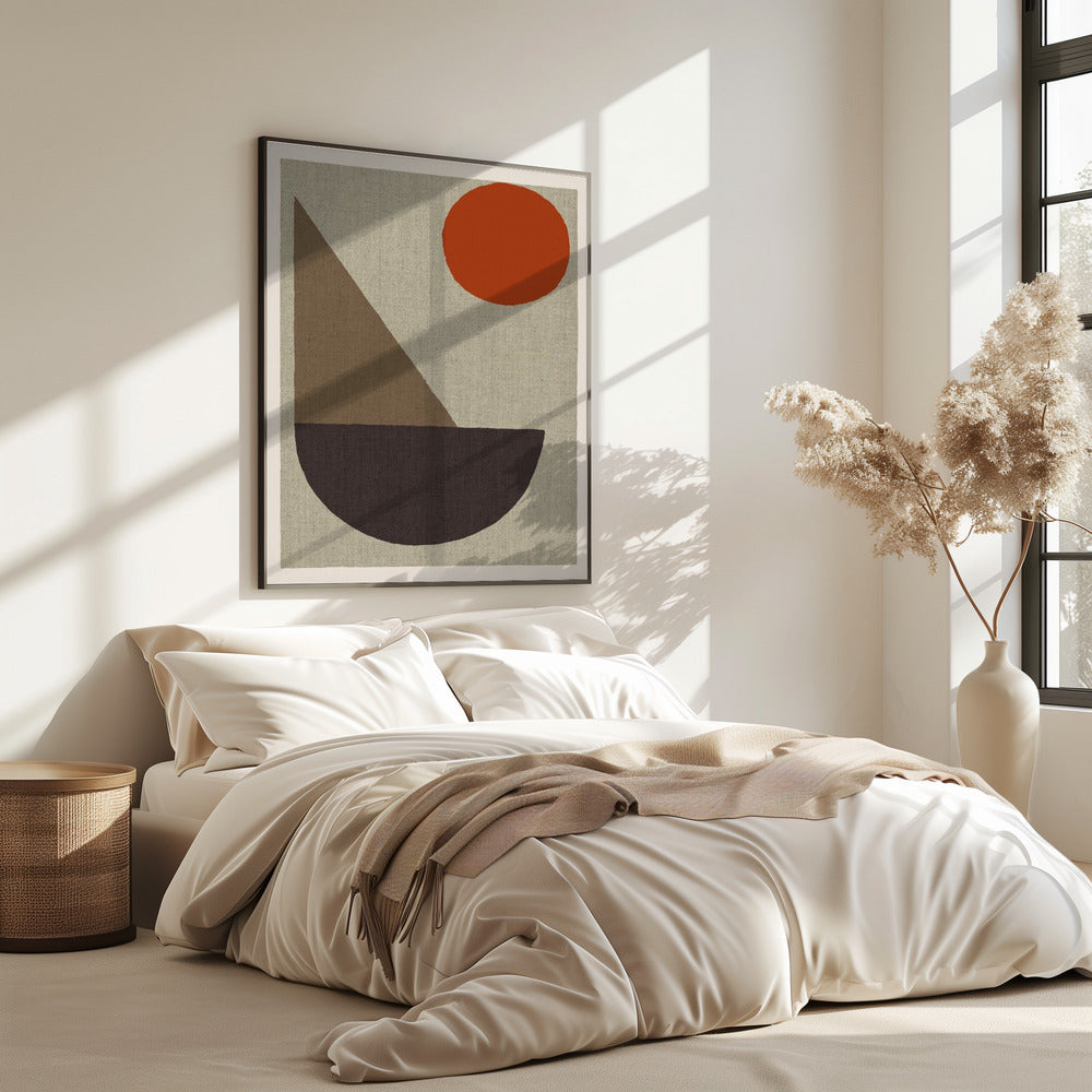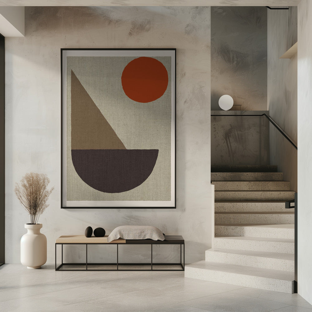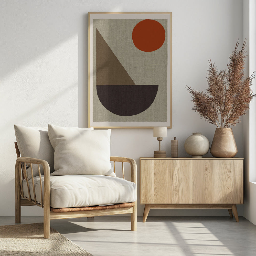 Abstracte vormen in aardtinten met rode cirkel | PosterSKU:3127154-5