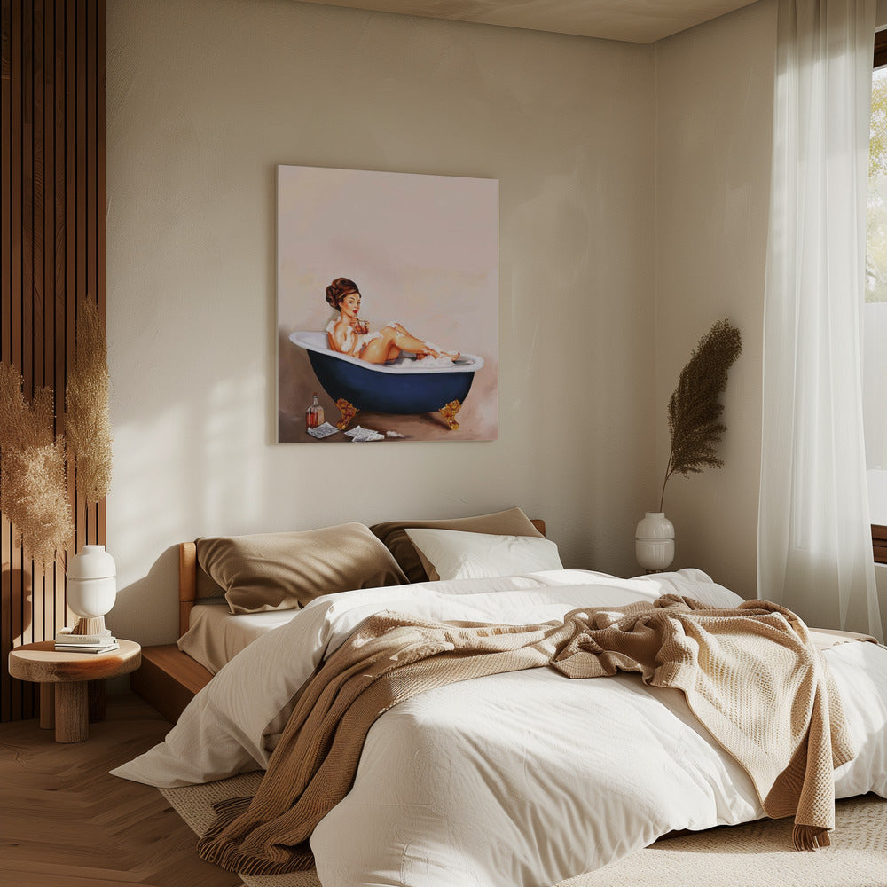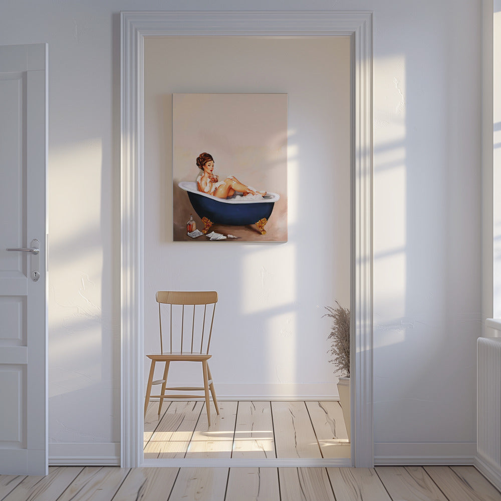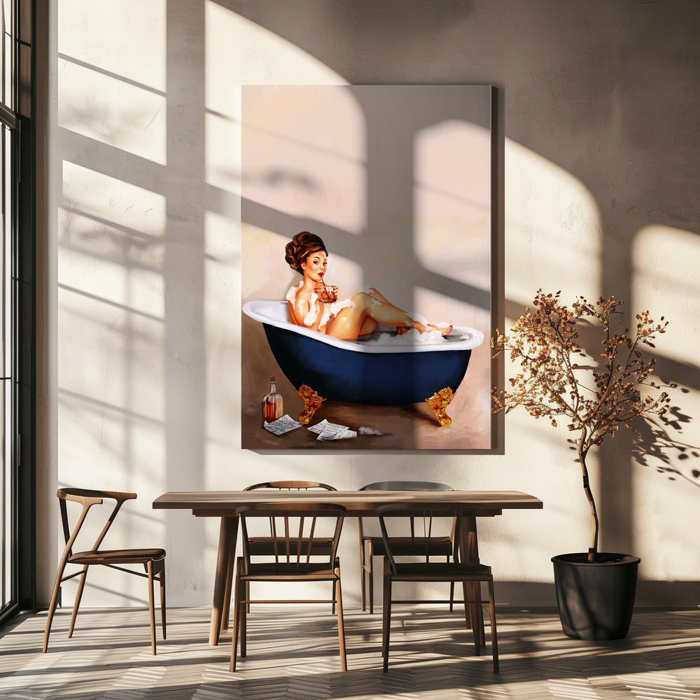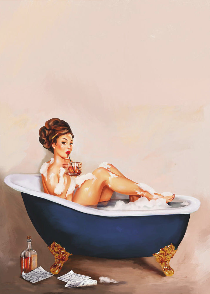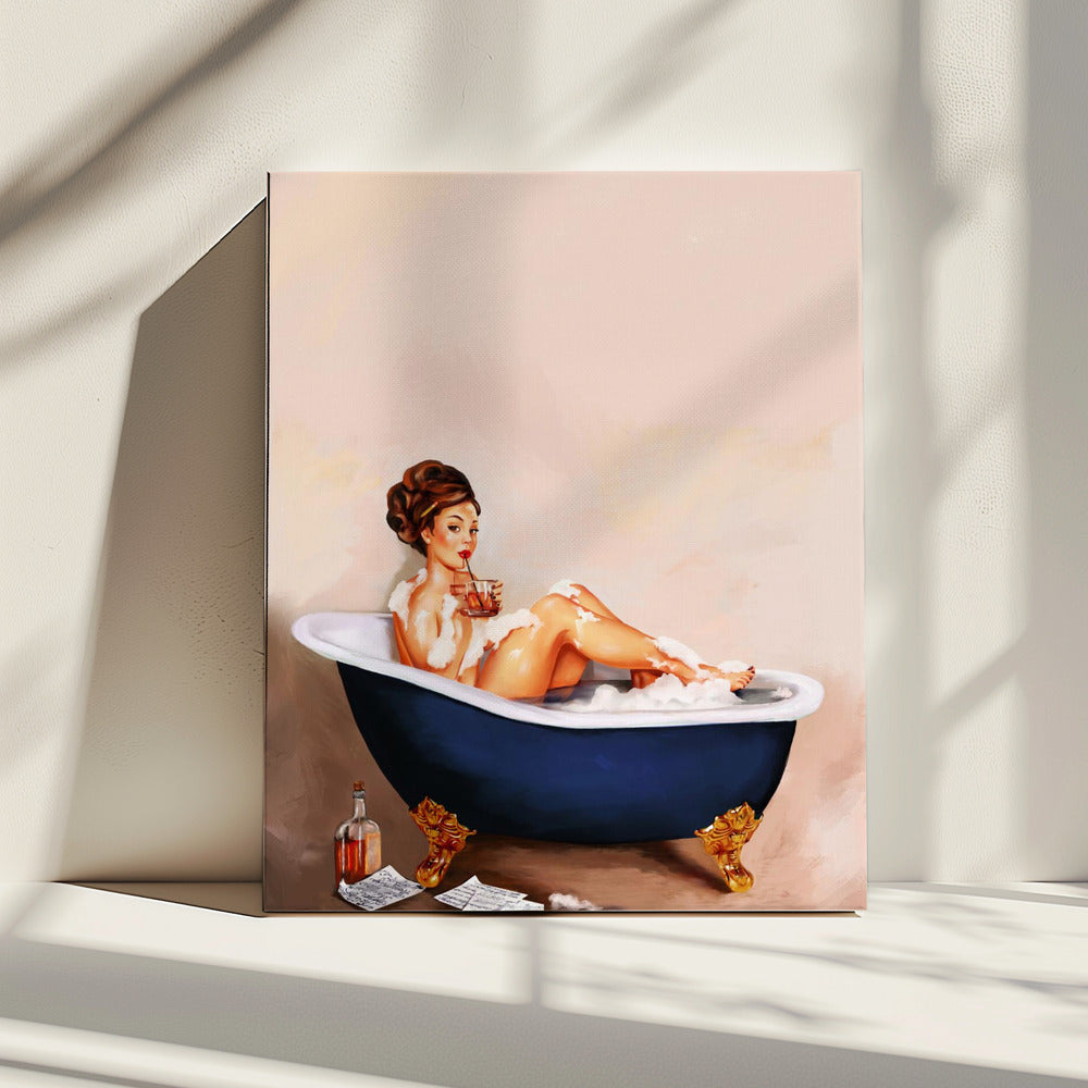 Badkuipdrankjes: Pinupmeisje drinkt in de badkamer | Canvas