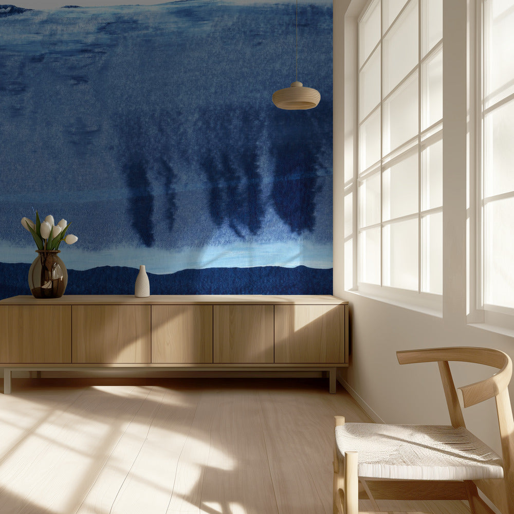 Blauwe textuur met vloeiende verticale lijnen | BehangSKU:2692041-1NW