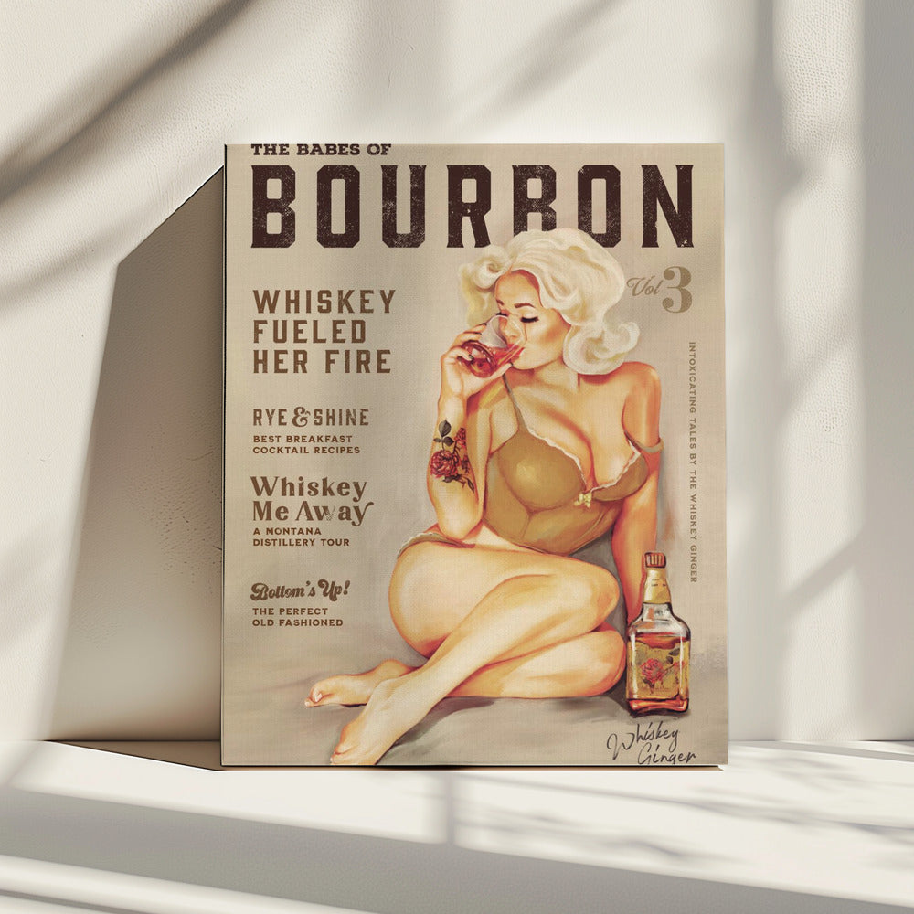 Bourbon wanddecoratie. Sexy vintage pin-upgirl drinkt whisky | CanvasSKU:2855719-4
