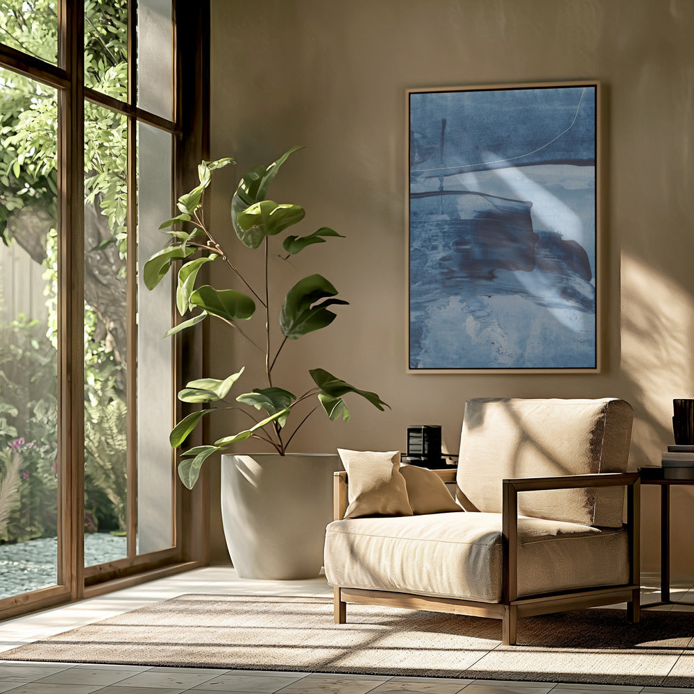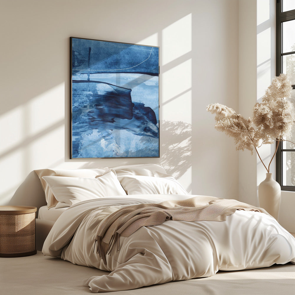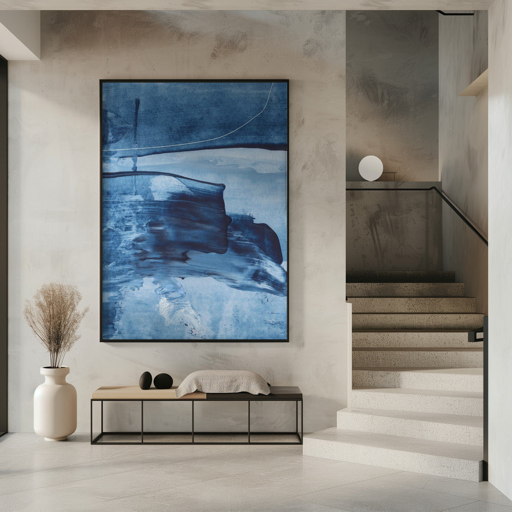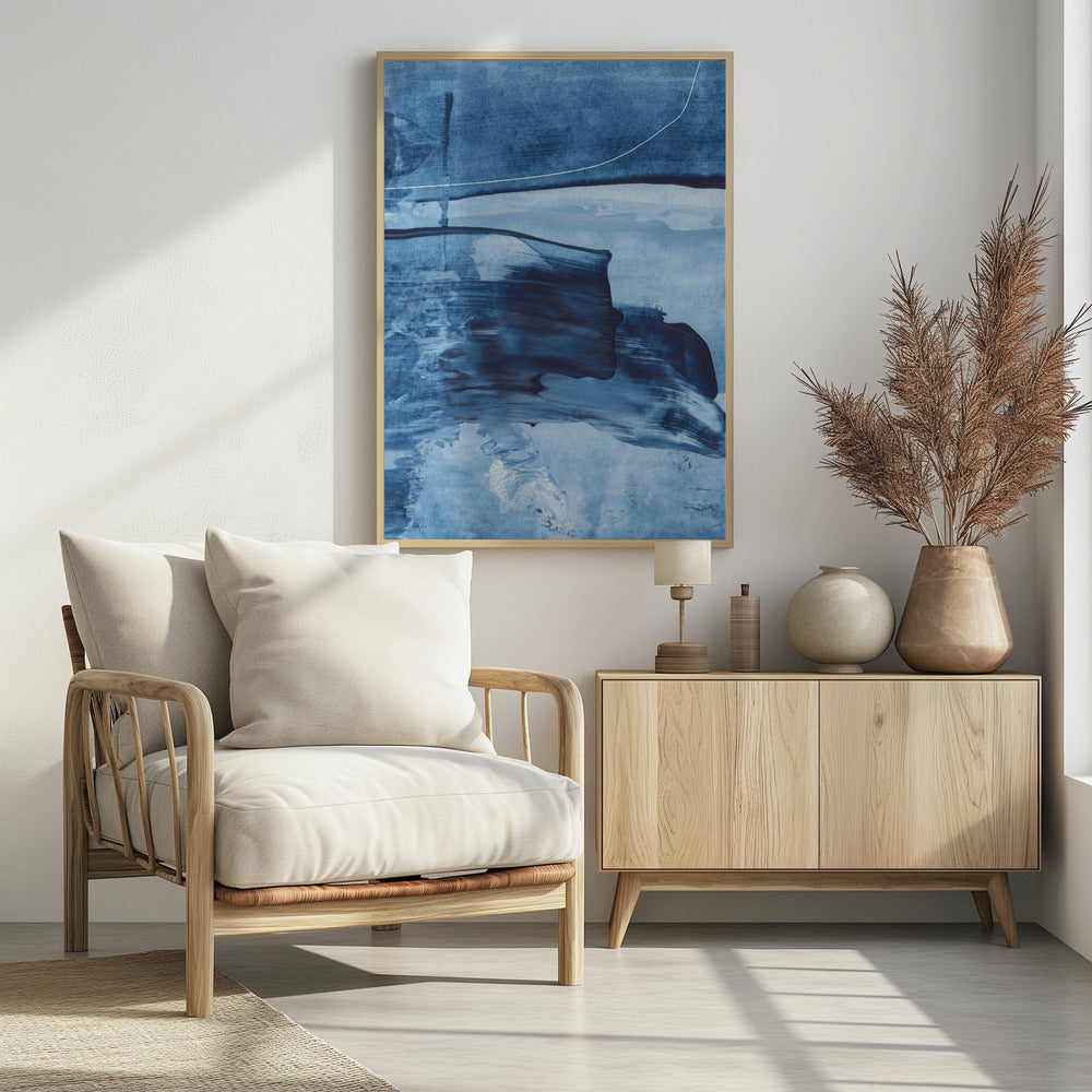 Dynamische blauwe tinten en vloeiende penseelstreken | Poster