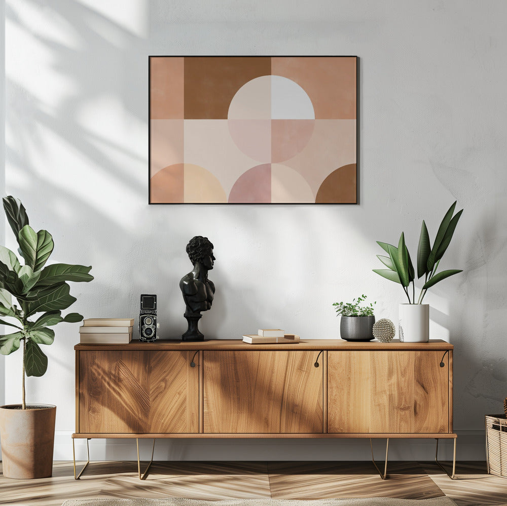 Geometrische cirkels en vierkanten in aardse tinten | Poster