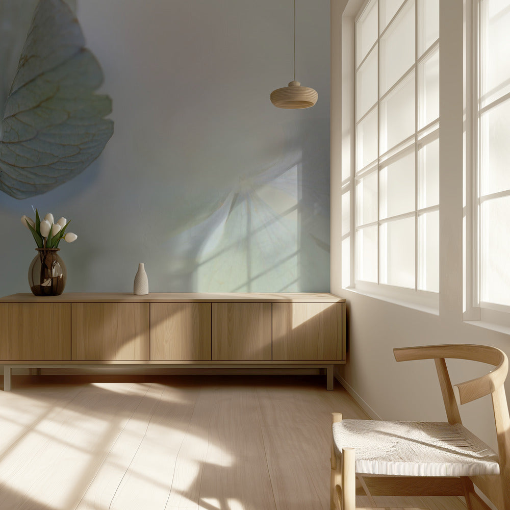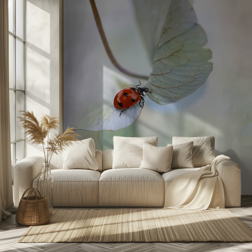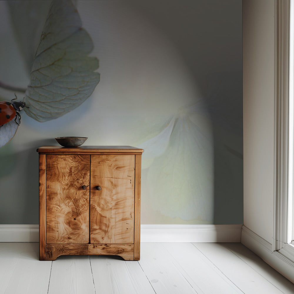 Lieveheersbeestje op blauwgroene hortensia | BehangSKU:1398544-1NW