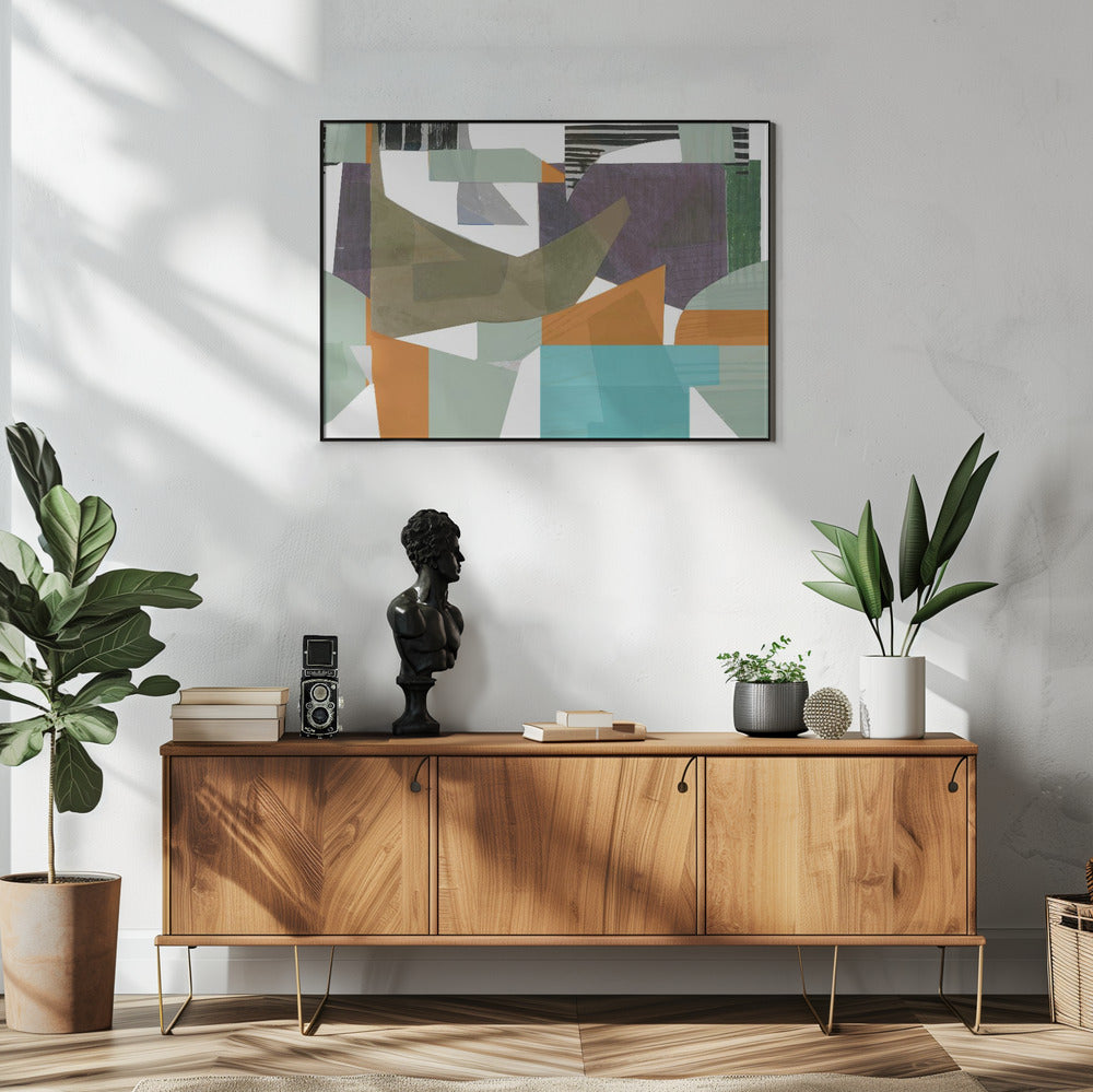 Oranje, Groen en Blauwe Tinten Abstract Hardedge 1 | Poster
