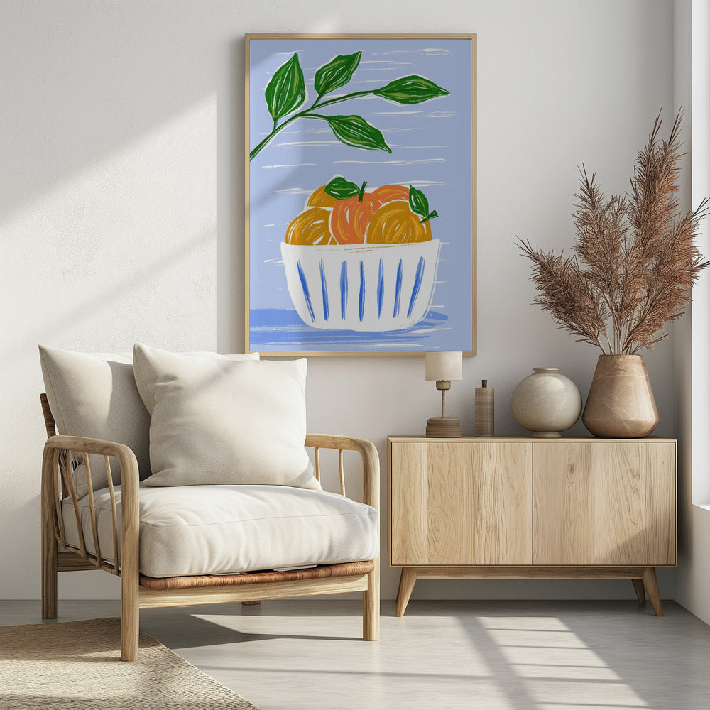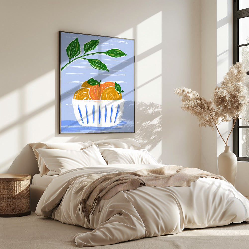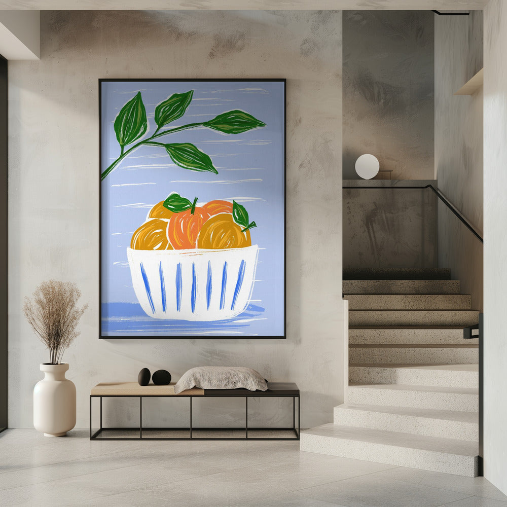 Sinaasappels en bladeren in een witte kom | Poster