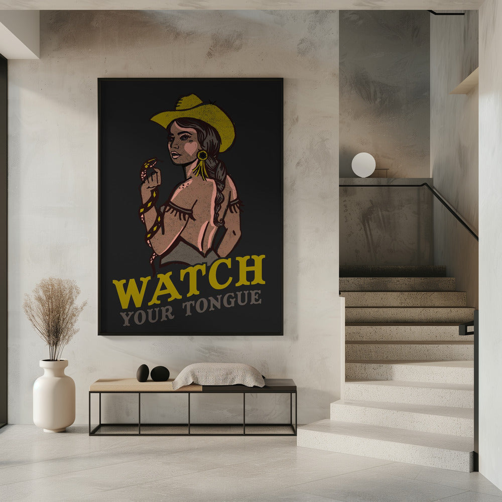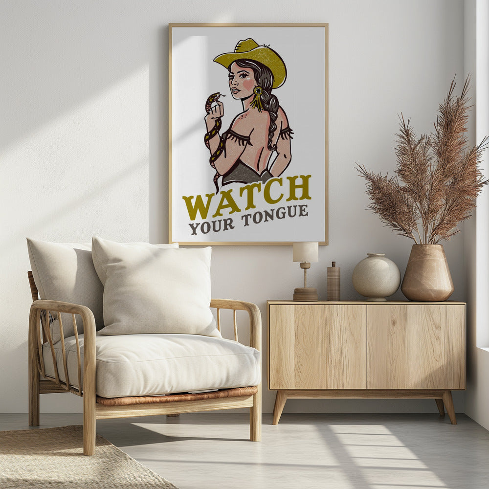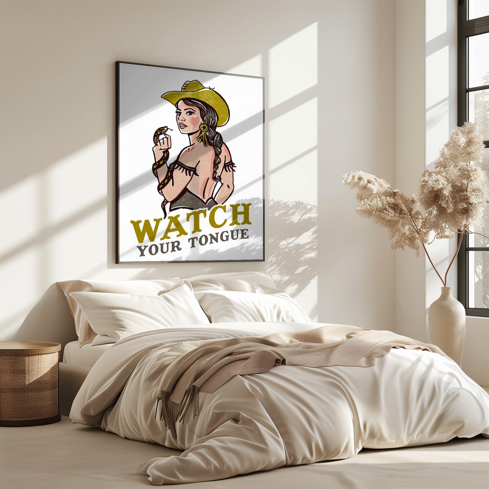 Let op je tong, stoere pin-up cowgirl en ratelslang | Poster