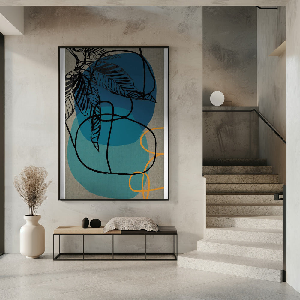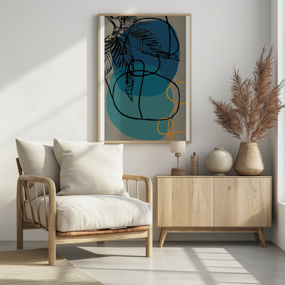 Houtblok Blad Teal Oranje Groen Abstract 2 Final | PosterSKU:2813152-5